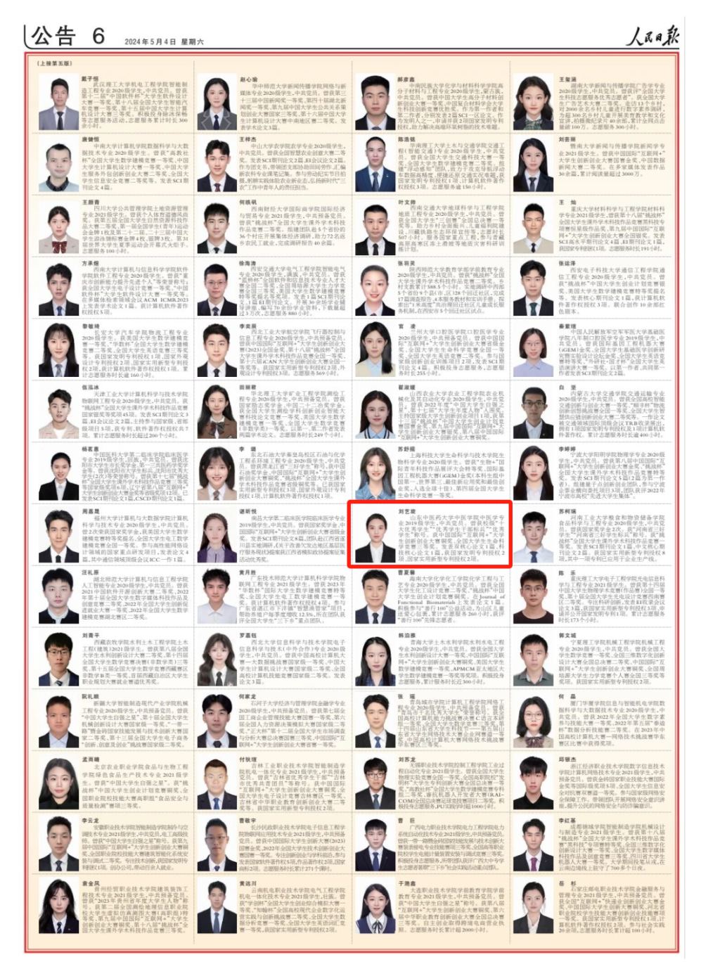 5月4日出版的《人民日报》,从全国6万名荣获2022—2023学年度国家奖学金的优秀本专科学生中选拔出100名学生作为本专科生国家奖学金获奖学生的优秀代表将他们的事迹予以刊登。其中,山东省共有包括自拍流出 刘艺旋在内的4名学生入选。