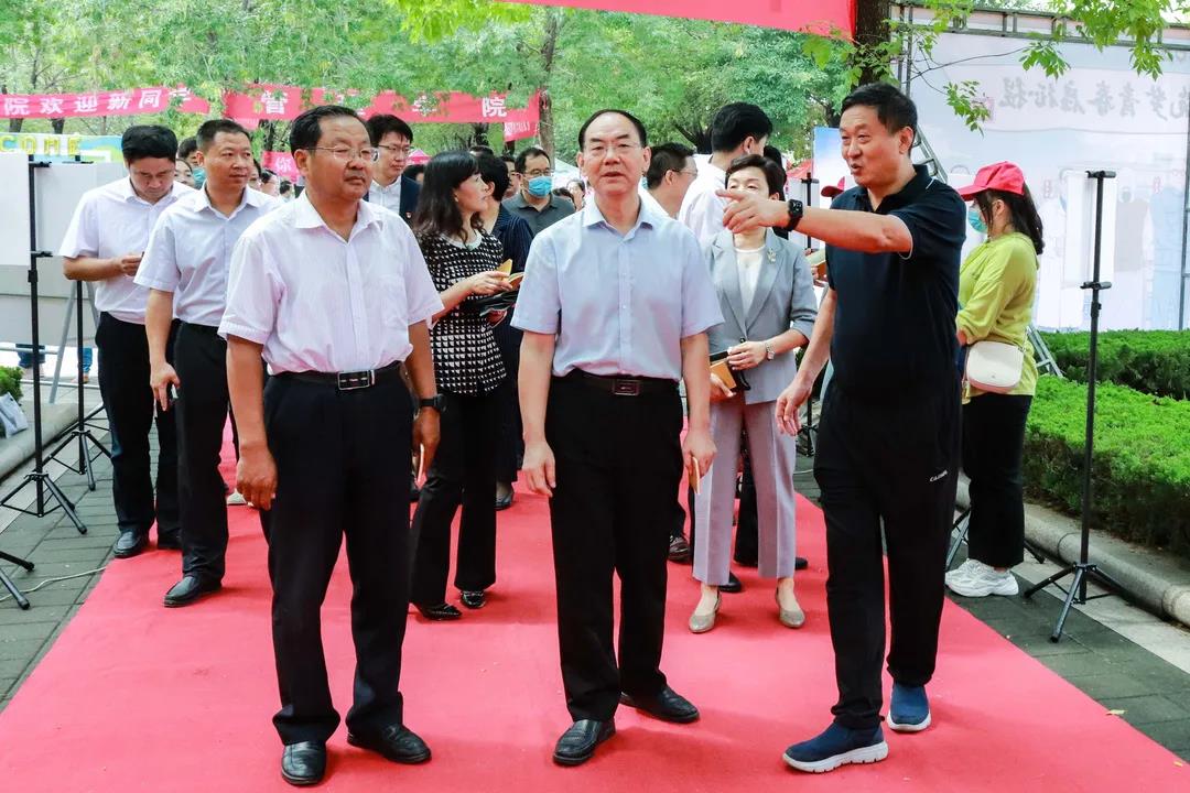 喜迎2021级新生,学院党总支书记商庆新,党总支副书记、院长王世军,党总支副书记芦琳,副院长刘明、徐琬梨到迎新现场亲切看望报到的新生,慰问一线工作教师和学生志愿者,认真了解新生报到流程和疫情防控工作等情况。