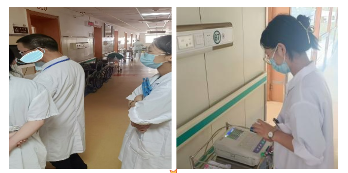 第二幅图是刚为患者在病房测量完心电图,将仪器推到走廊整理的画面。记录自己独立面对病人,与病人沟通配合顺利完成的瞬间。虽然是很不起眼的小事情,但它鼓励我自信大方地于患者交流,也鼓舞我积极动手操作,为我在临床工作上提供信心。