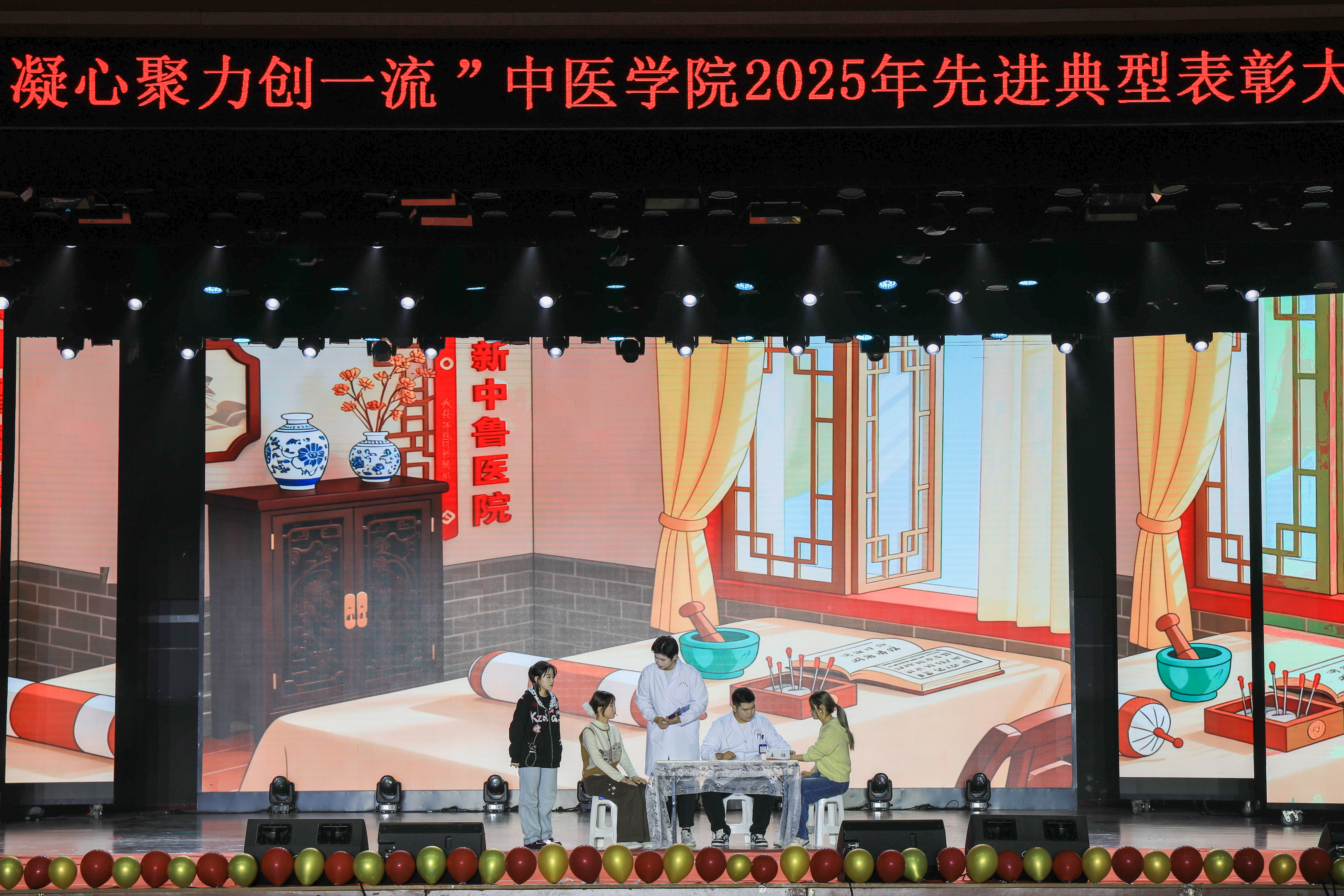 “继往开来画新篇,凝心聚力创一流”2025年先进典型表彰大会暨文艺晚会在长清校区岐黄礼堂举行。党委委员、副校长王琳,山东新中鲁中医医院院长李树沛出席活动并颁奖。