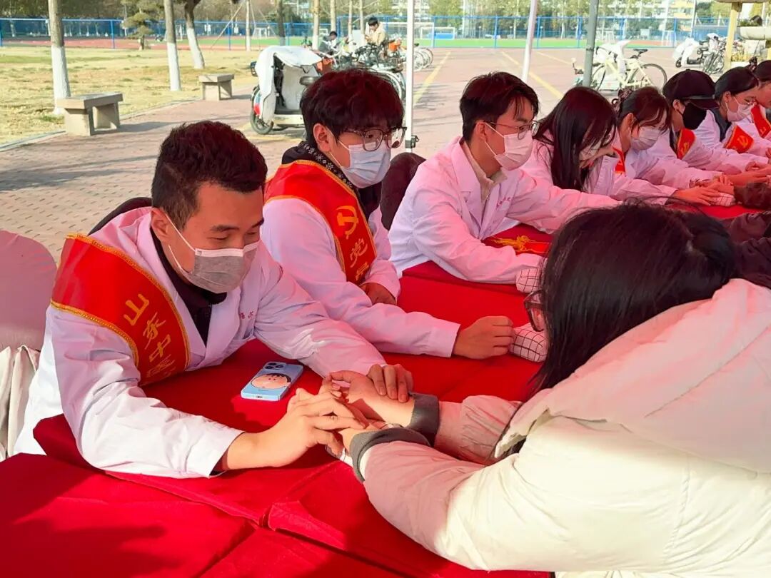 活动当日,志愿者们于齐鲁工业大学艺体中心前广场展示了一系列独具特色的中医技能,吸引了众多参与者。此次活动以中医传统养生技法为核心设计了四大特色体验项目。在“探脉知体”的脉诊体验区,志愿者运用专业知识探寻脉象,帮助齐工大学子了解自身身体状况;“循经通络”的推拿环节,志愿者熟练的手法获得阵阵好评;“耳间养生”项目通过耳穴贴压疗法,揭示耳部穴位功效,引导学生开启自我调理;“草本时光”提供养生茶饮,缓解秋冬干燥,促进体内平衡。所有体验项目均围绕疏通气血、积蓄能量的理念展开,助力齐工大师生在繁忙的生活中找回身心的和谐与宁静。