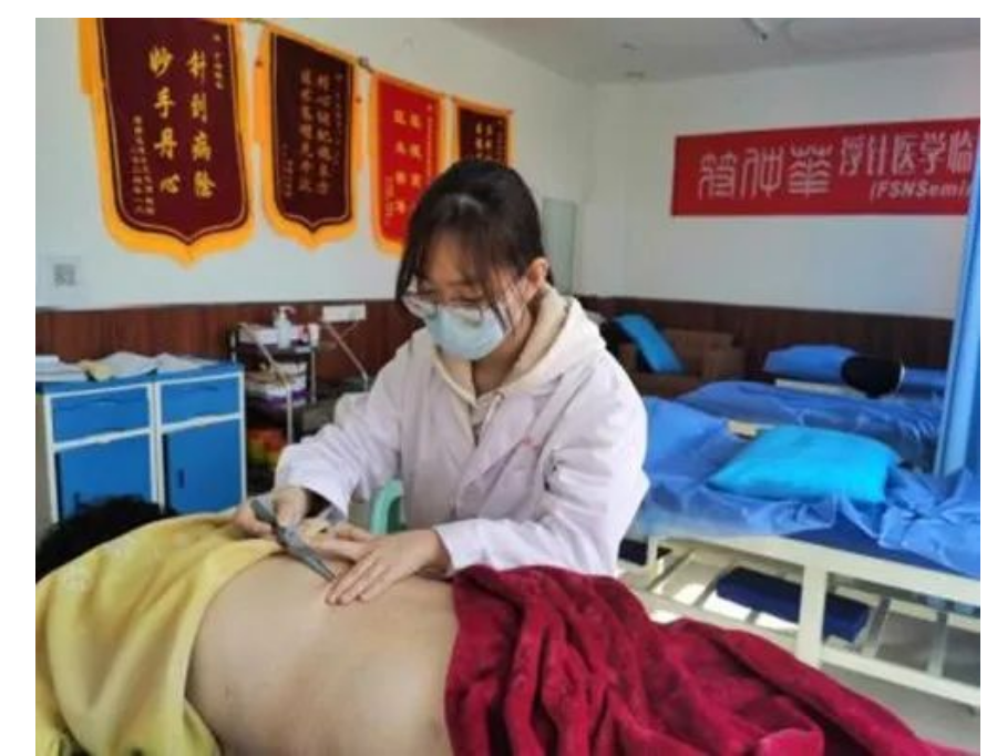 画面中的位置,正是患者腰部筋膜张力失衡形成的“患肌”——通过《灵枢·官针》中“浮刺”法演化而来的现代触诊技术。这张光影交织的影像,不仅凝固了浮针疗法的精妙瞬间,更见证着古老刺法在现代疼痛医学中的涅槃重生。当0.3秒的进针动作被延长为永恒,我们看见《黄帝内经》的智慧在纳米级不锈钢针尖上焕发新生,传统医学的“以通为用”理念与神经体液调控理论在此完美交融。